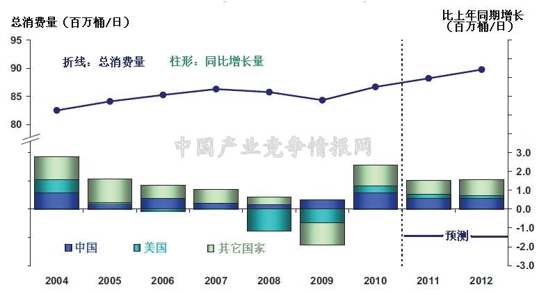 美国能源信息署(EIA)4月29日最新发布的报告预计,2011年全球原油需求将增长150万桶/日,至8820万桶/日,2012年将增长160万桶/日至8980万桶/日。其中,中国、巴西及中东等OECD之外的国家的消费量将占未来两年石油消费增长量的绝大部分份额。