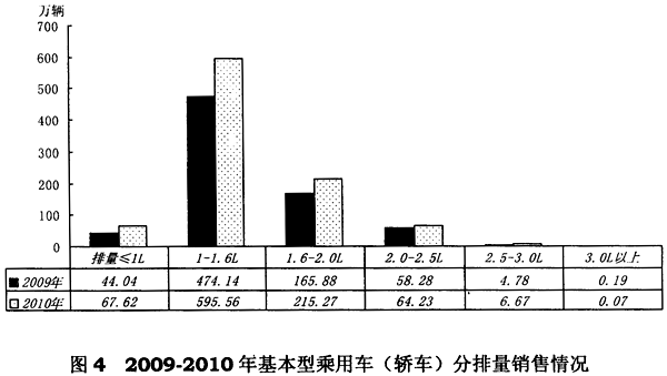 2010年,基本型乘用车(轿车)市场继续保持较快增长,共销售949.43万辆,同比增长27.05%,增幅较上年回落21.02个百分点。在轿车主要品种中,除3升以上排量品种销量同比有所下降外,其它品种均呈现不同程度增长,其中 1.6-2.0升和2.5-3.0升两大系列增幅均高于上年同期,2010年,上述两大系列分别销售215.27万辆和6.67万辆,同比分别增长29.77%和39.72%,增幅高于上年同期12.44个百分点和5.86个百分点;1.6升以下继续保持较快增长,但增速明显减缓,共销售663.18万辆,同比增长27.98%,增幅较上年减缓38.85个百分点。