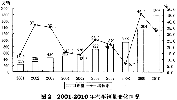 在经历了2009、2010两年高速增长之后,2011年我国汽车工业将进入平稳增长的发展阶段,调整产品结构、鼓励和发展小排量、节能环保汽车是我国汽车工业的发展方向。预计全年汽车产销增速将回归常态,实现10%-15%是有可能的。