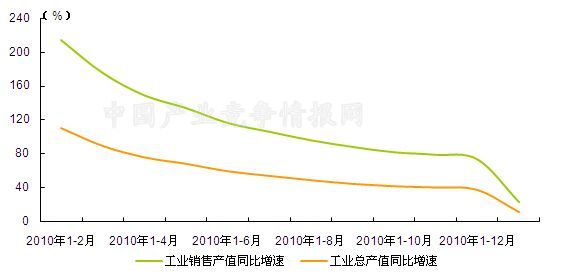 图1 2010年2月-2011年2月汽车行业重点企业工业总产值、工业销售值增速变动走势