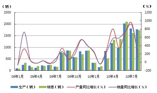 图1 2009年1月-2010年8月新能源汽车产销情况