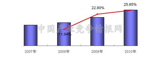 近几年来,我国氨基酸输液的市场规模逐年快速增长,增长速度也逐步加快,其增速由2008年的11.94%上升至2010年的25.65%,市场前景看好。
