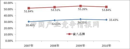 | 前八厂家合计 | 50.99% | 53.15% | 55.11% | 53.84% | |