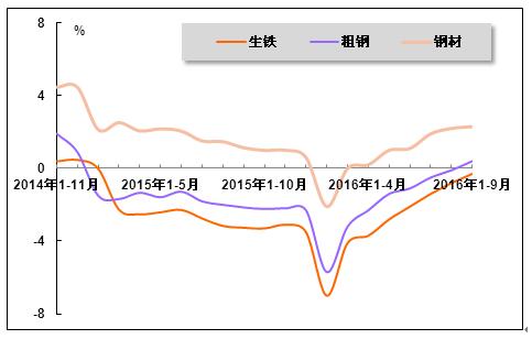 图2 2014年11月-2016年9月钢铁行业增加值走势