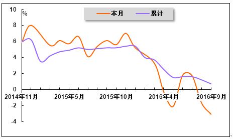 | 2016年1-9月 | 3,096.80 | -0.4 | 0.7 |