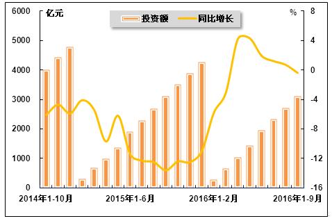 表1 2015年9月-2016年9月钢铁行业固定资产投资变化情况