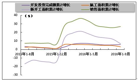 图6 2015年8月-2016年9月全国房地产市场主要指标变动趋势