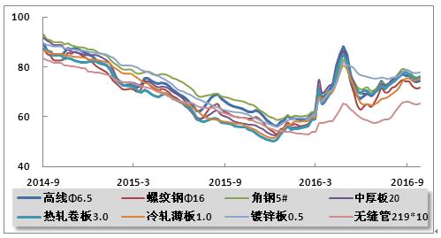 图10 2014年9月-2016年9月主要品种钢材价格指数走势