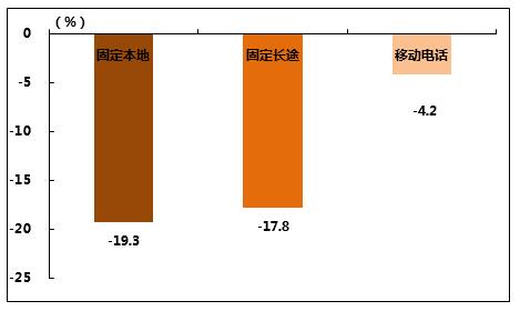 | 固定本地电话通话量合计 | 亿分钟 | 307.3 | -19.3 |